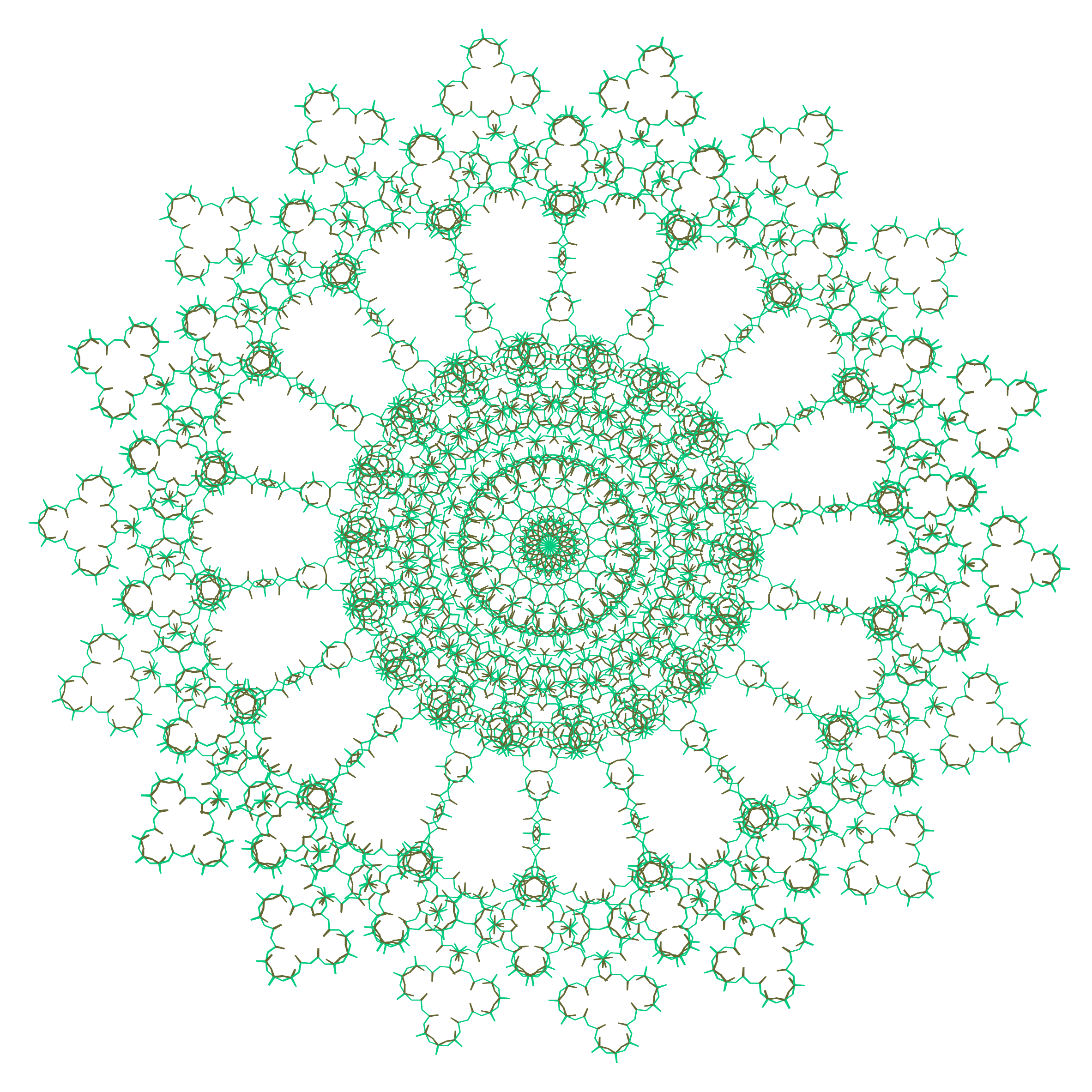 I did rotate this for aesthetic reasons (-24.7 degrees, to be precise). There is just so much to look at — and all produced by changing a few parameters in a straightforward recursive routine.