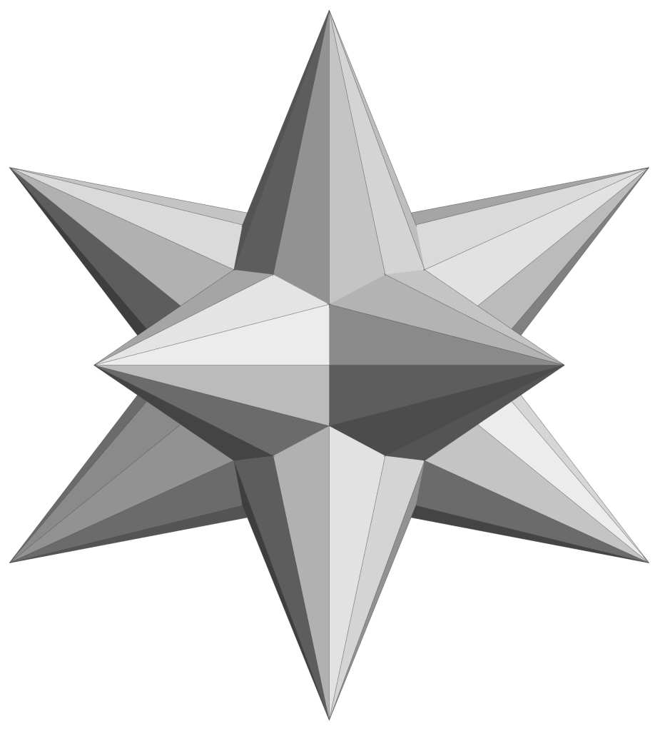 Moreover, the intersection of these two tetrahedra is an octahedron. Magic! Well, not really. It all derives from 2 x 4 = 8.